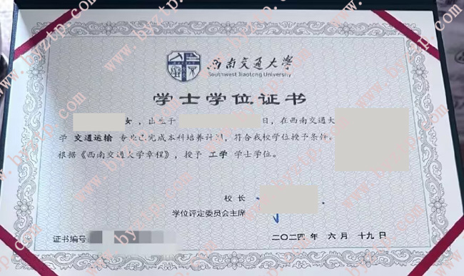 西南交通大学毕业证学位证样本图片/模板样式