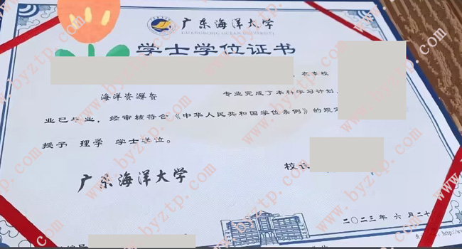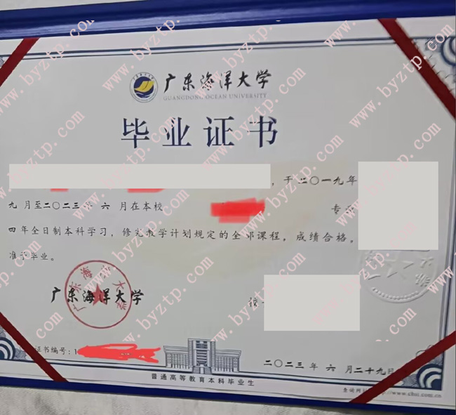 广东海洋大学2023年全日制本科毕业证模板/样本图片