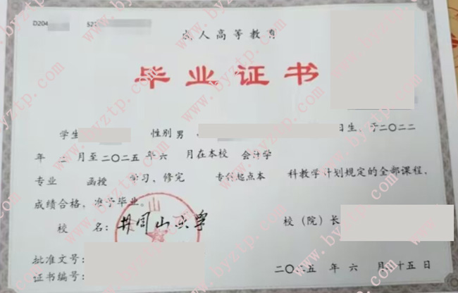 井冈山大学2025年成人教育函授专科起点本科毕业证样本模板(会计学)