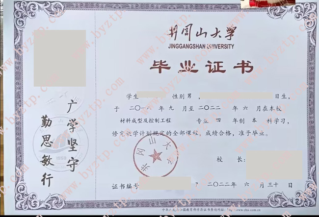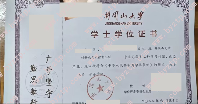 井冈山大学2022年全日制本科毕业证样本模板(材料成型及控制工程)