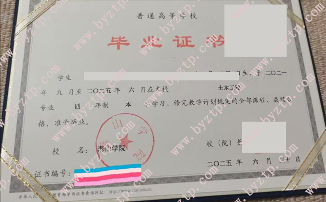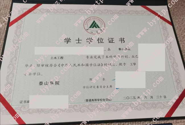 泰山学院2025年全日制本科毕业证模板/样本图片(土木工程)