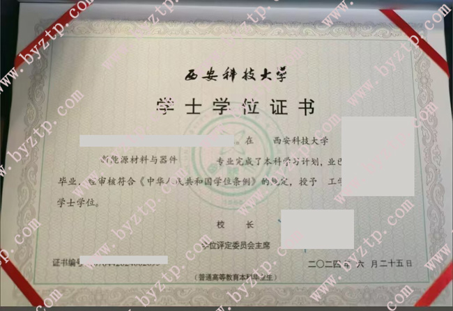 西安科技大学2024年全日制本科毕业证样本图片(新能源材料与器件)