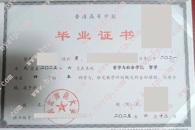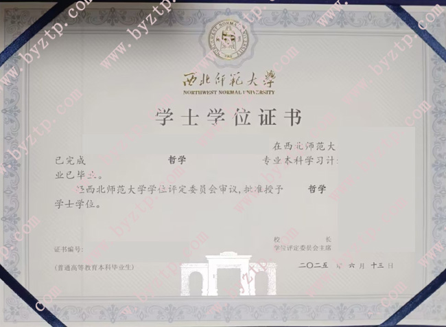 西北师范大学2025年全日制本科毕业证样本图片(哲学)