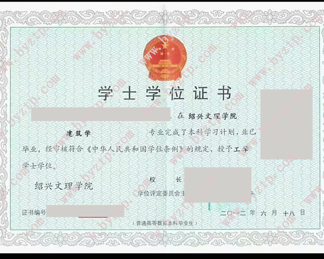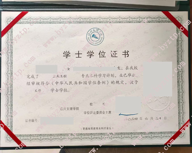 绍兴文理学院2024年全日制本科学位证模板/样本图片(土木工程)