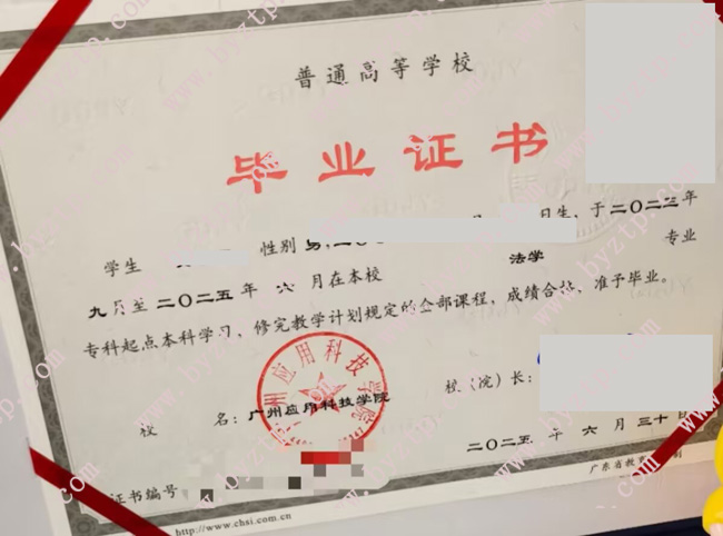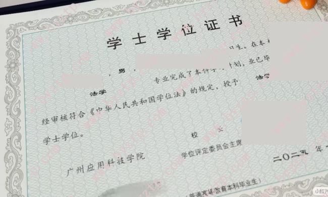 广州应用科技学院2025年全日制本科毕业证样本图片(法学)