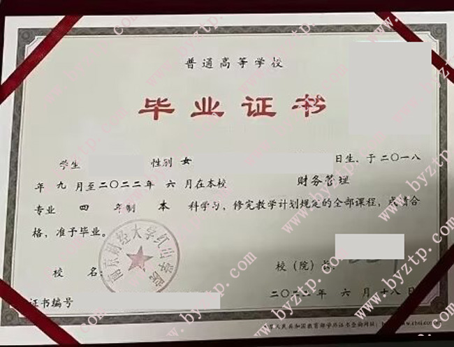 南京财经大学红山学院2022年全日制本科毕业证样本图片(财务管理)