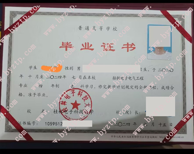 桂林电子科技大学2024年全日制本科毕业证样本图片(船舶电子电气工程)