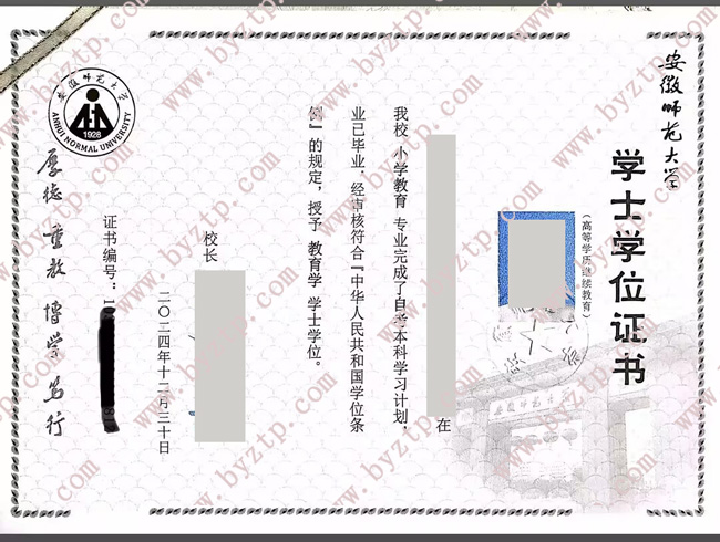 安徽师范大学毕业证学位证样本图片