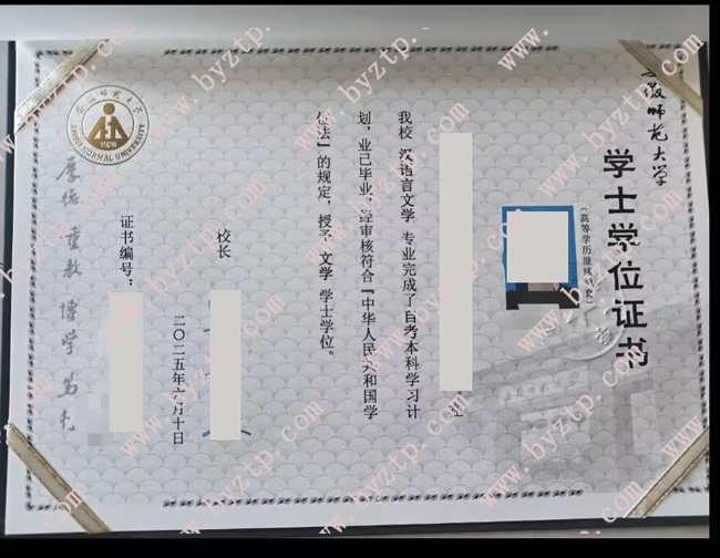 安徽师范大学2025年自考本科学位证样本图片(汉语言文学)