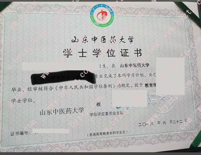 山东中医药大学2018年全日制本科学位证模板/样本图片