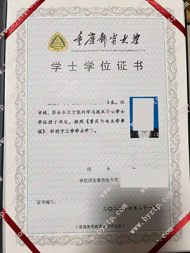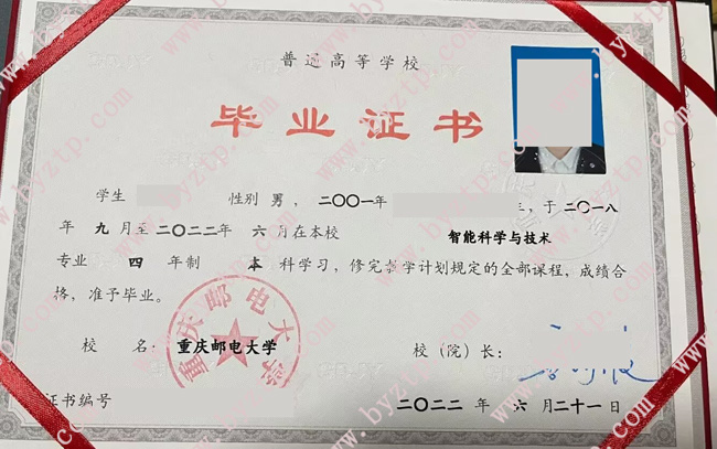 重庆邮电大学2022年全日制本科毕业证样本图片(智能科学与技术)