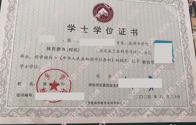 萍乡学院2024年全日制本科学位证模板/样本图片(体育教育)