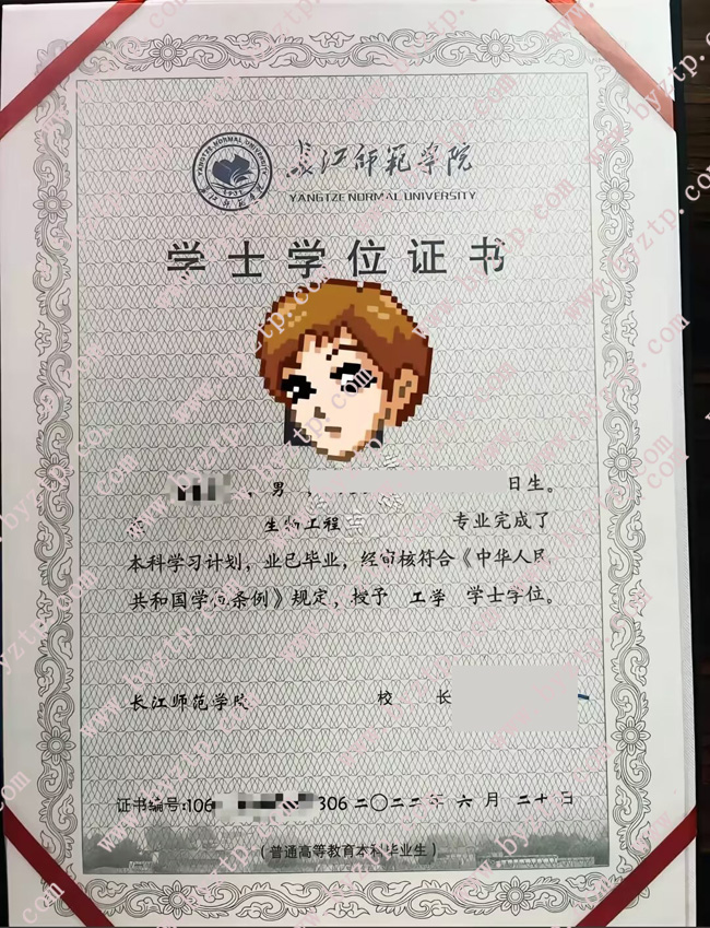 长江师范学院2022年全日制本科毕业证样本图片(生物工程)