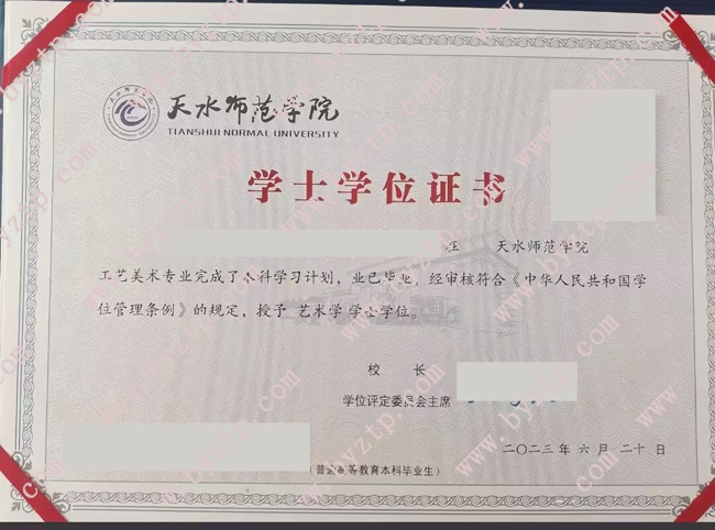 天水师范学院2023年全日制本科学位证样本图片(工艺美术)