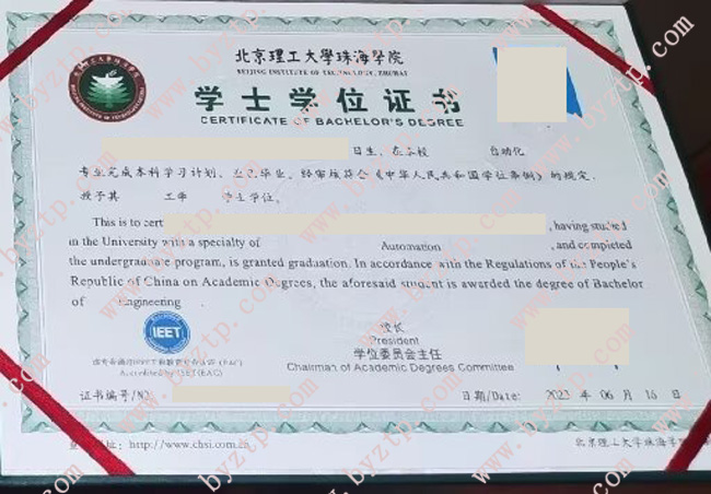 北京理工大学珠海学院2023年全日制本科毕业证样本图片(自动化)