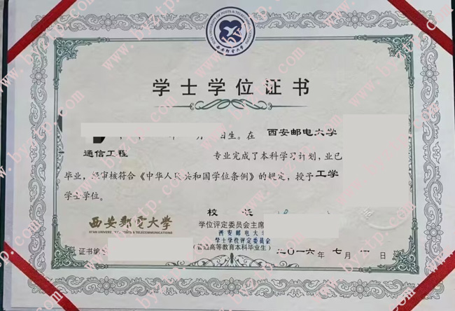 西安邮电大学2016年全日制本科毕业证样本图片(通信工程)