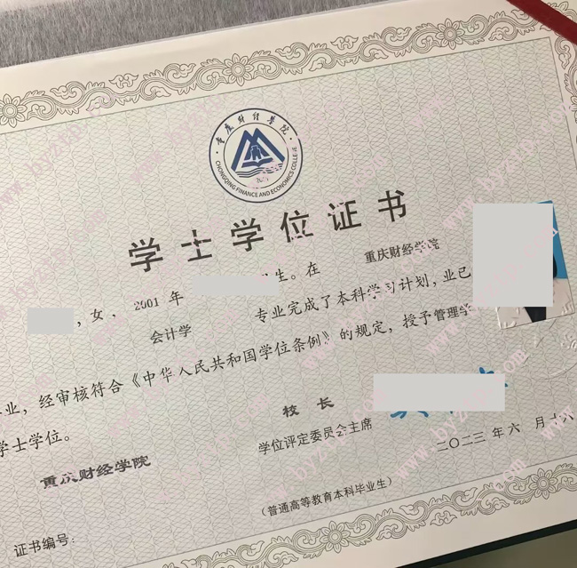 重庆财经学院2023年全日制本科学位证样本图片(会计学)