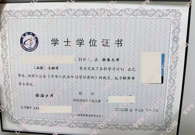 渤海大学2024年成人教育函授本科学位证样本图片(金融学)