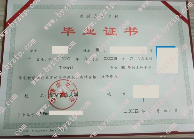 华南农业大学2024年全日制本科毕业证样本图片(工业设计)