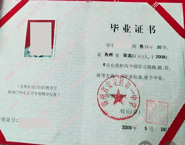 贵州省安龙县第一中学2008年高中毕业证样本图片