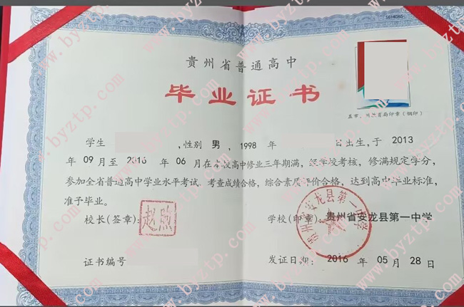 贵州省安龙县第一中学2016年高中毕业证样本图片