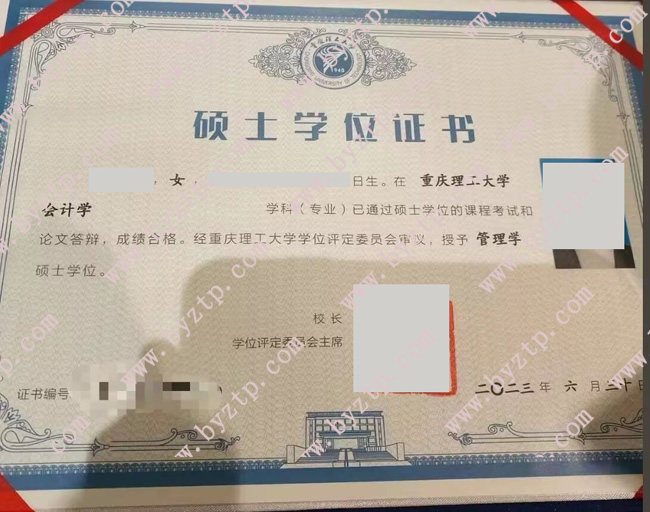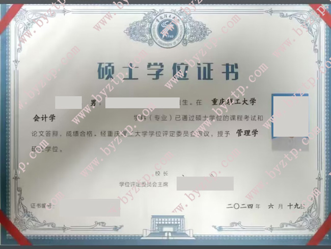 重庆理工大学2024年全日制硕士毕业证样本图片(会计学)