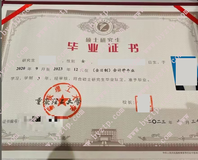 重庆理工大学2023年全日制硕士毕业证样本图片(会计学)