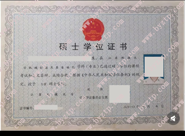 江苏科技大学2010年全日制硕士学位证样本图片(机械制造及其自动化)