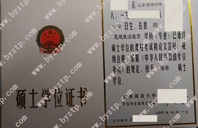 曲阜师范大学2000年全日制硕士学位证样本图片(思想政治教育)